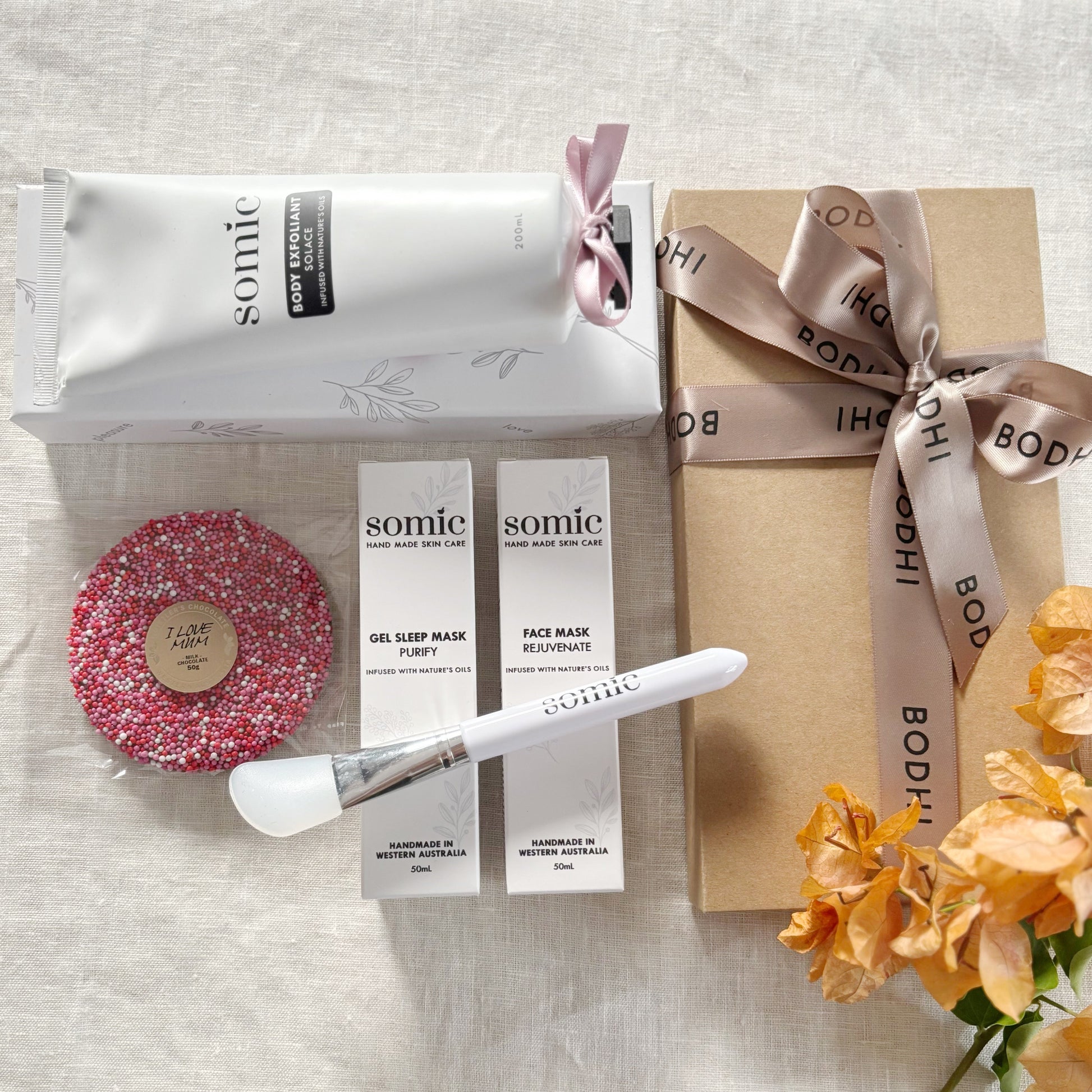 Celebrate Mum or the remarkable woman in your life with an experience of pure luxury. This exquisite hamper includes a revitalising body scrub, a premium facial duo to nourish and restore, a coveted Bodhi Spa voucher for a day of true relaxation, and a decadent I Love Mum chocolate — the perfect finishing touch to a truly indulgent gift.