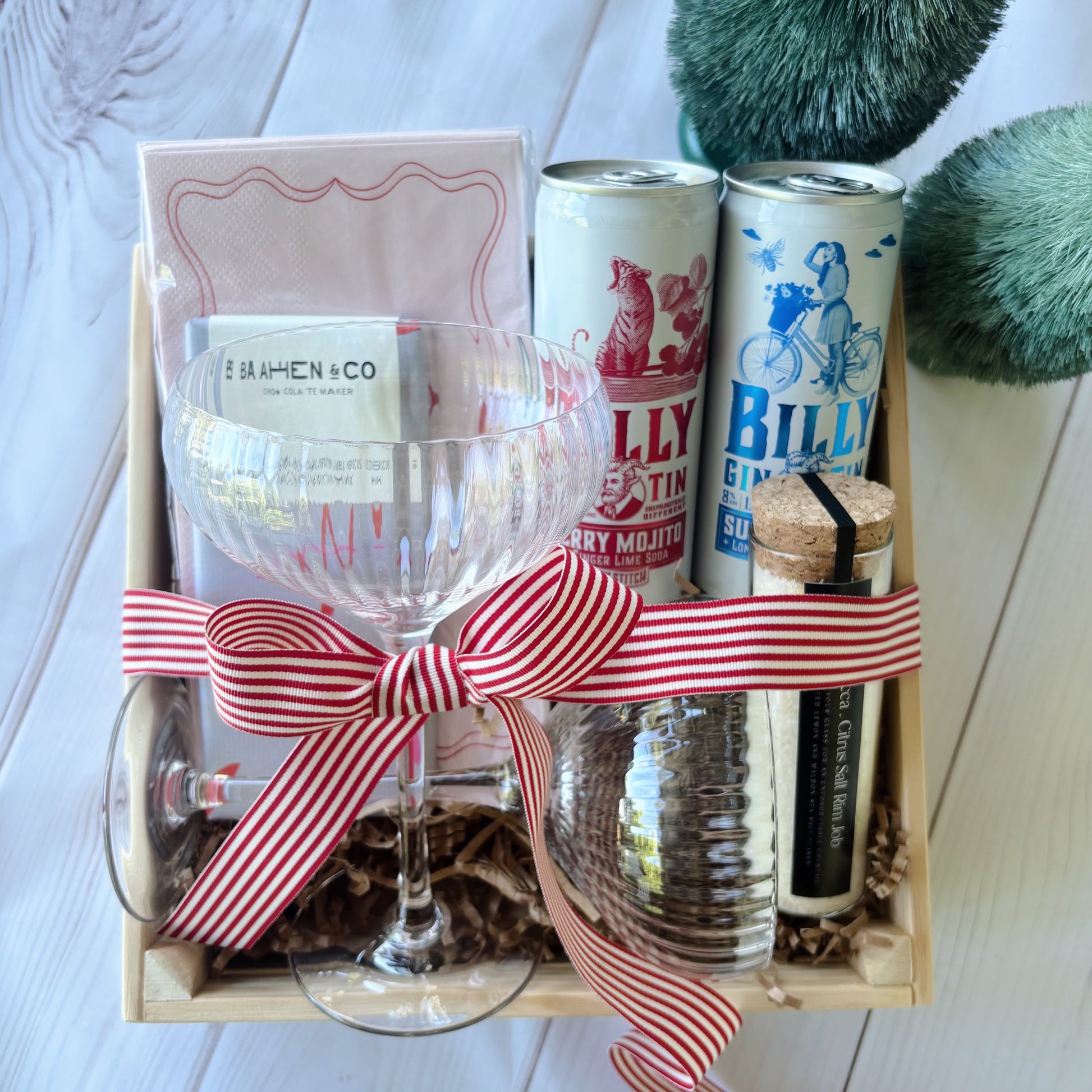 Get the Christmas celebrations started with this cheeky little number! Featuring gin pre-mixes, a pair of cocktail glasses, indulgent chocolate, and rimming salt - everything you need to shake, sip, and sparkle your way through the festive season.